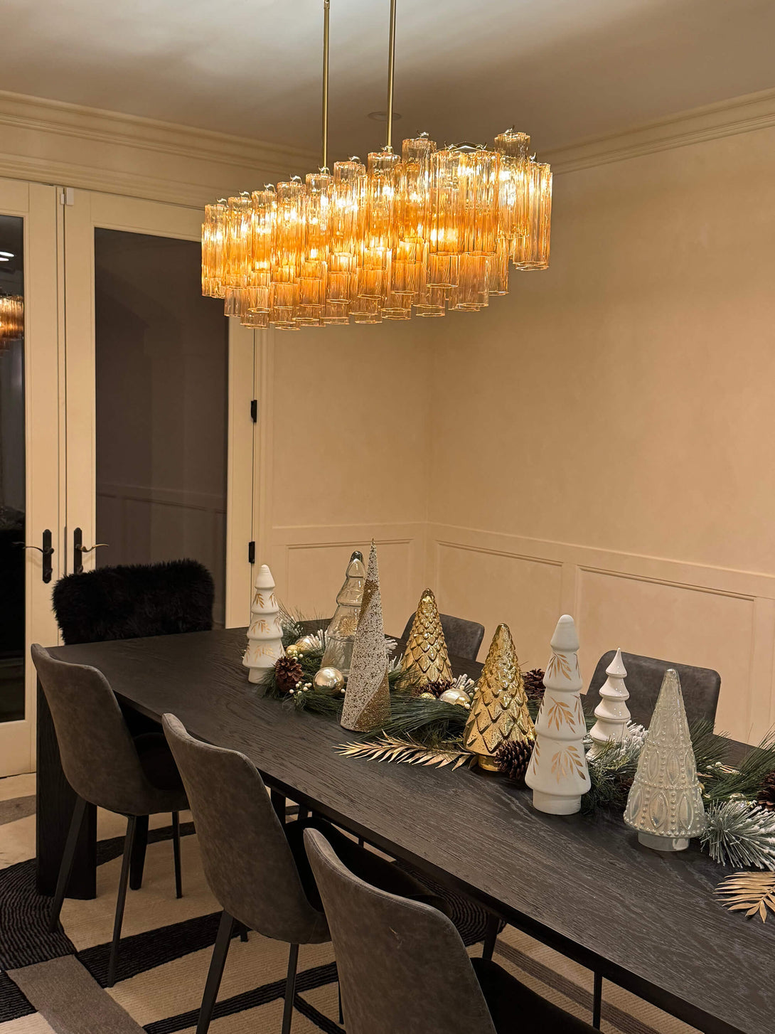 The captivating Addens Lighting Collection is a modern-day interpretation of the iconic mid-century Tronchi chandelier. Inspired by its predecessor's sleek lines and geometric shapes, the Addens features a polished nickel or Aged Brass metal frame that exudes sophistication and style. Its unique design showcases transparent tiers of textured Tronchi glass tubes, forming a mesmerizing 5-point rounded star shape. Choose from a range of glass colors, including clear, amber, smoke, and white, or the stunning Autumn option, which features a captivating multicolor disposition of amber, clear, and smoke Tronchi glass. The Addens Lighting Collection offers various sizes and finishes, allowing you to find the perfect fit for your space while adding a touch of timeless elegance. |