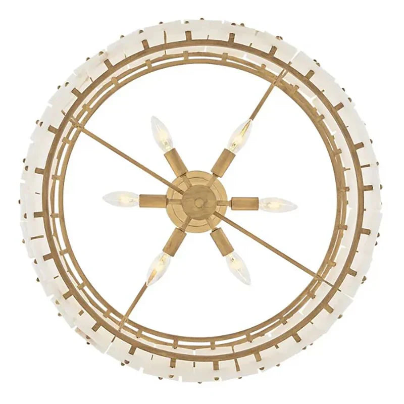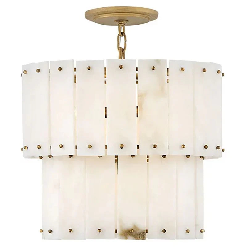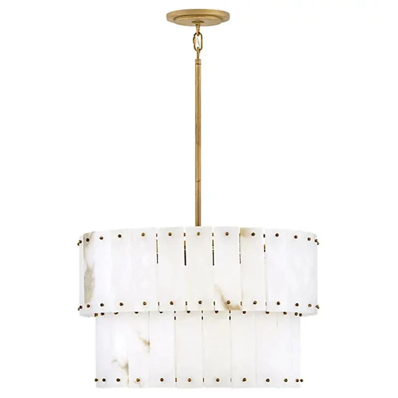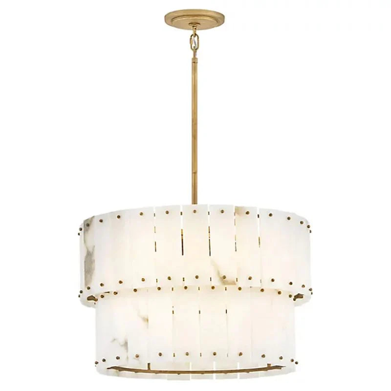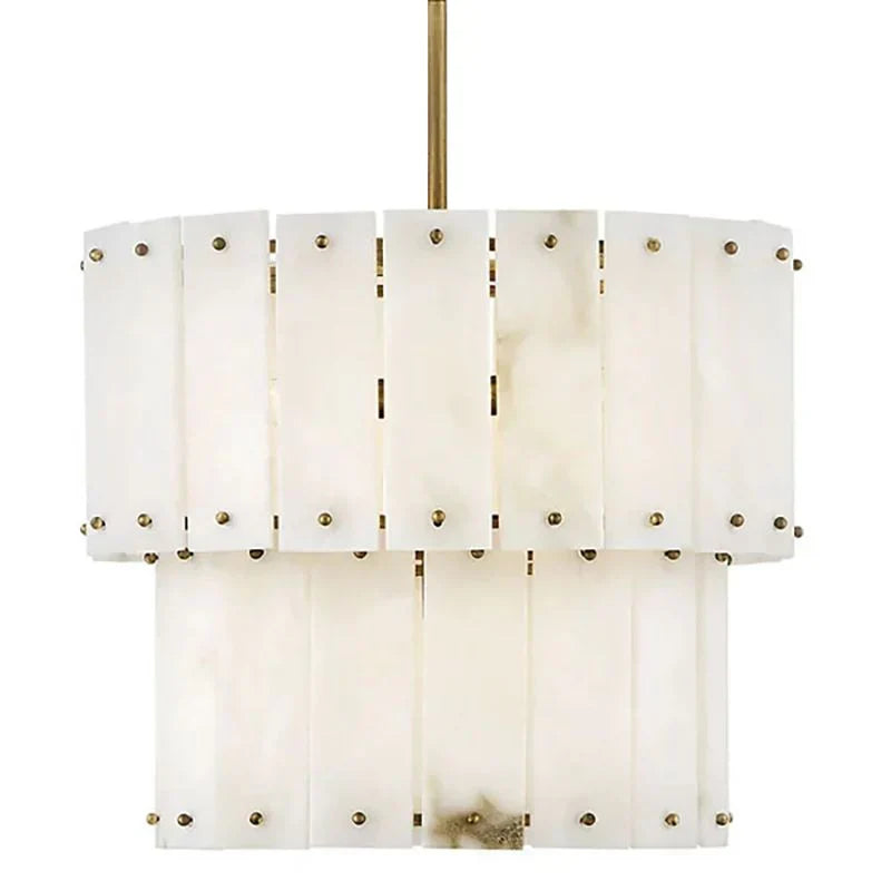 The Alabster Rancho 2-Tier Round Chandelier blends mid-century modern and contemporary styles. Crafted from durable steel, this chandelier features an exquisite alabaster shade for a touch of luxury.Simone’s LEDs provide efficient lighting, allowing you to create the ambiance you desire. The chandelier features sloped ceiling adaptations, allowing you to easily place it in a variety of settings.