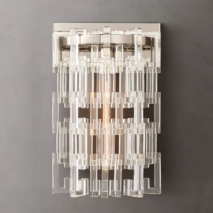 | This collection of lamps, pure and minimalist in style, features stunning, interlocking open and closed chains designed with crystalline crystals. The stylized chains are suspended without wires, creating an elegant cascade of shimmering light. |