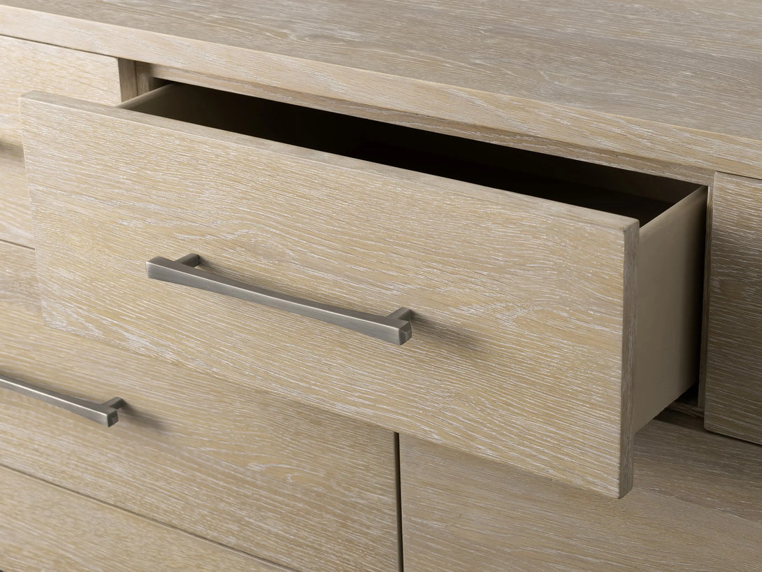 - Drawers sit on under-mounted soft-close glides and feature complementing hardware.