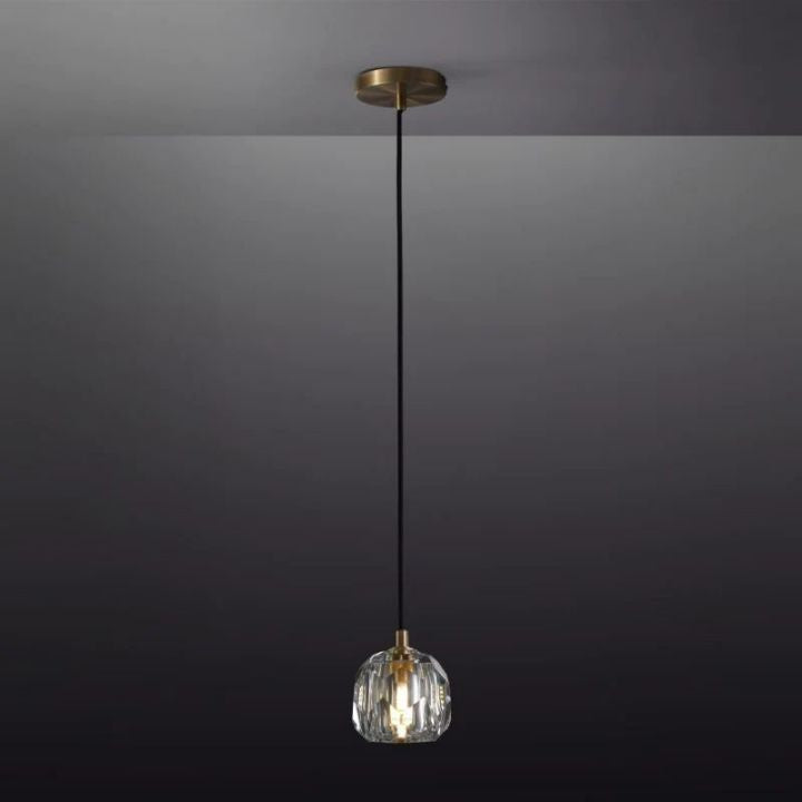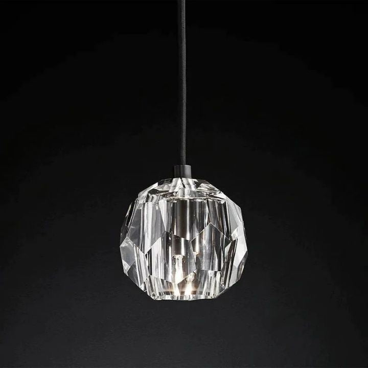 | The collection crafted of solid brass and crystal glass, for luxe materials and superior craftsmanship, each finely faceted sphere is ground and polished by hand to reflect and refract the light. |