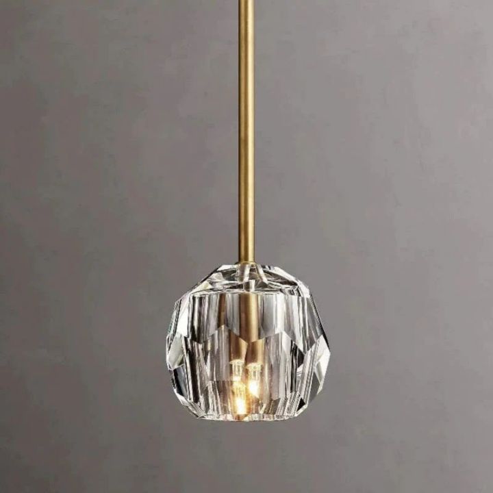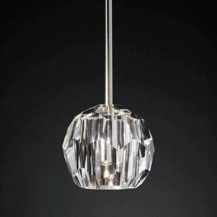 | The collection crafted of solid brass and crystal glass, for luxe materials and superior craftsmanship, each finely faceted sphere is ground and polished by hand to reflect and refract the light. |