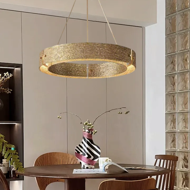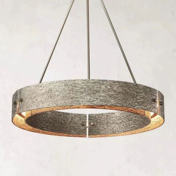 | The Elena collection of modern sculptural lighting features solid brass cast in hand-formed molds to create intricate, sensual textures on minimalist surfaces. Its moody and atmospheric chandelier glow enhances modern living rooms, making it the best chandelier choice. |