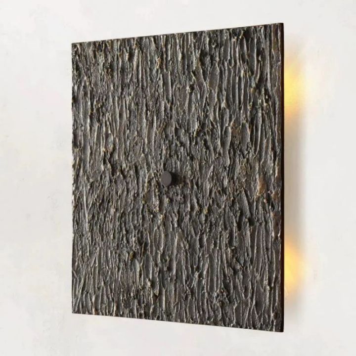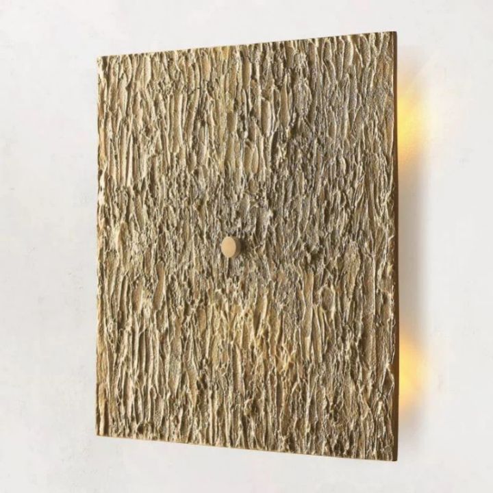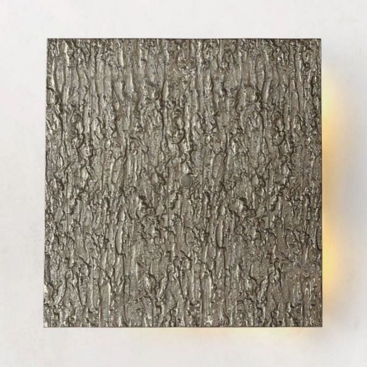 | The Elena collection of modern sculptural lighting features solid brass, hand-cast in molds to create intricate, sensual textures that complement minimalist geometric surfaces. The wall sconce's moody and atmospheric glow enhances the beauty of modern living rooms. Adding a modern picture light further elevates the ambiance. |