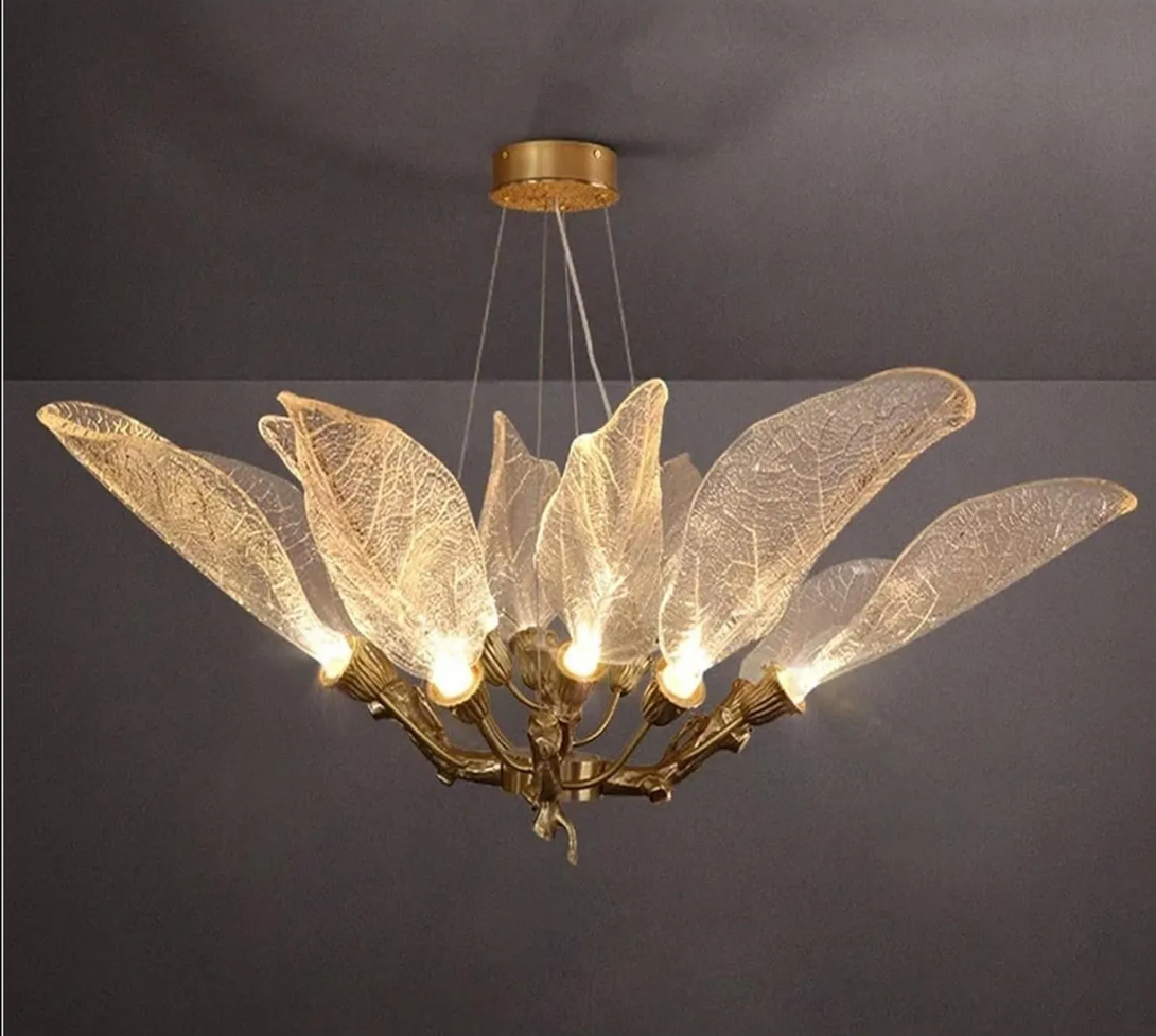 | This Encounter Leaf Ceiling Light is crafted from high-density crystal glass and premium-quality brass, giving it a sophisticated and luxurious appearance. |