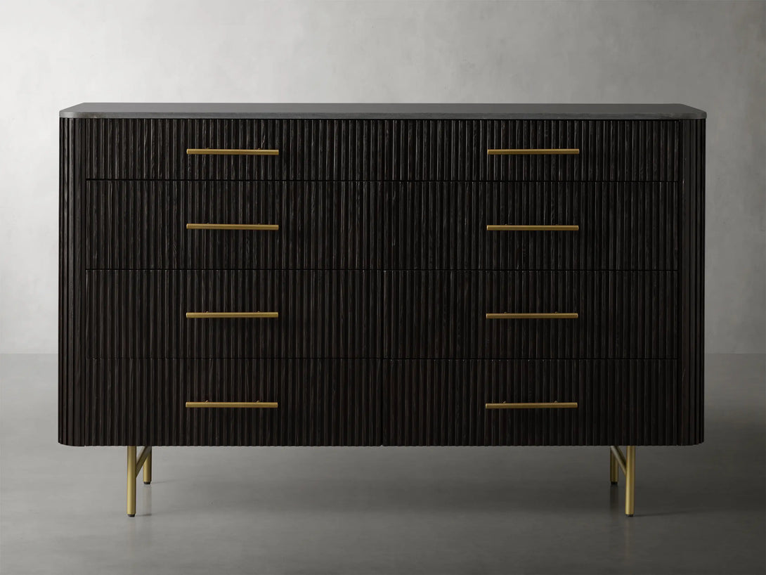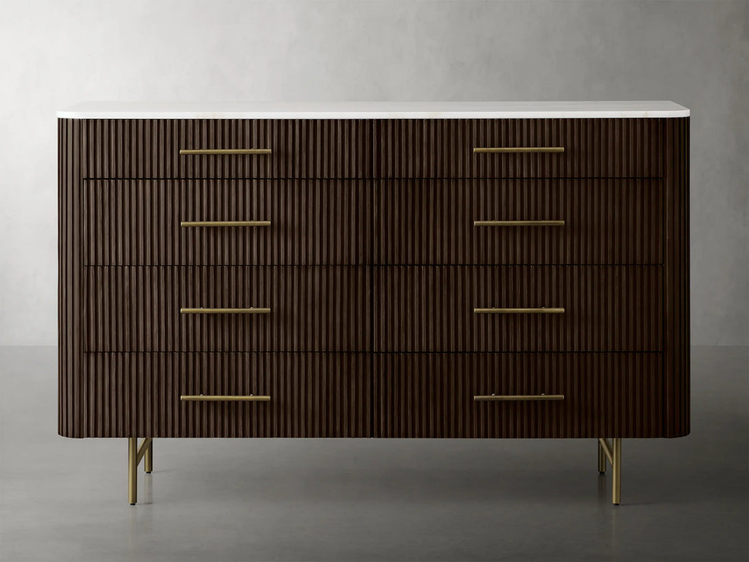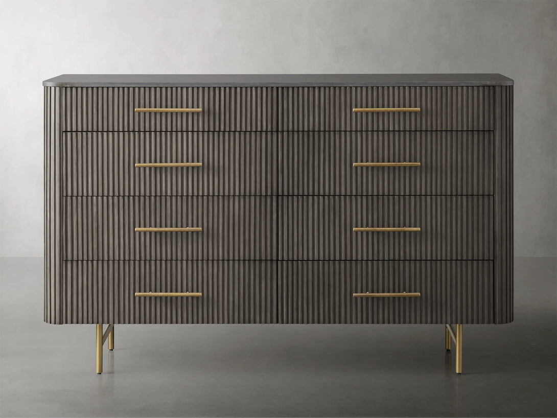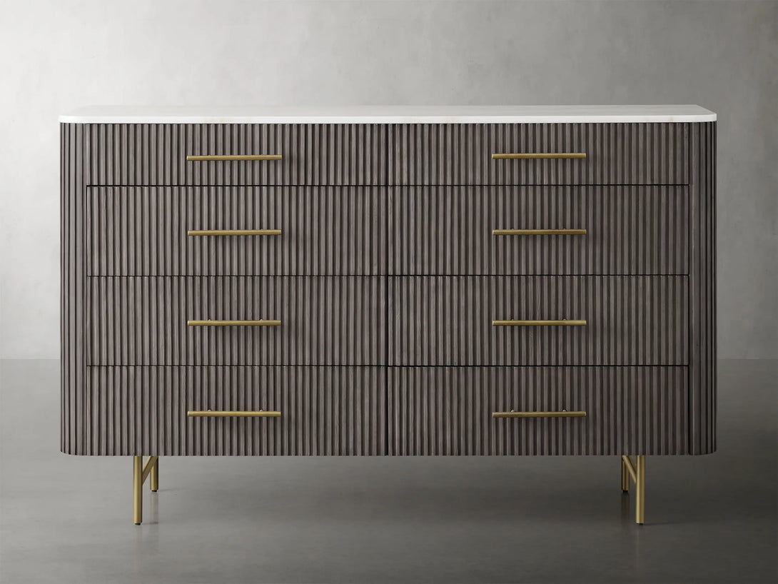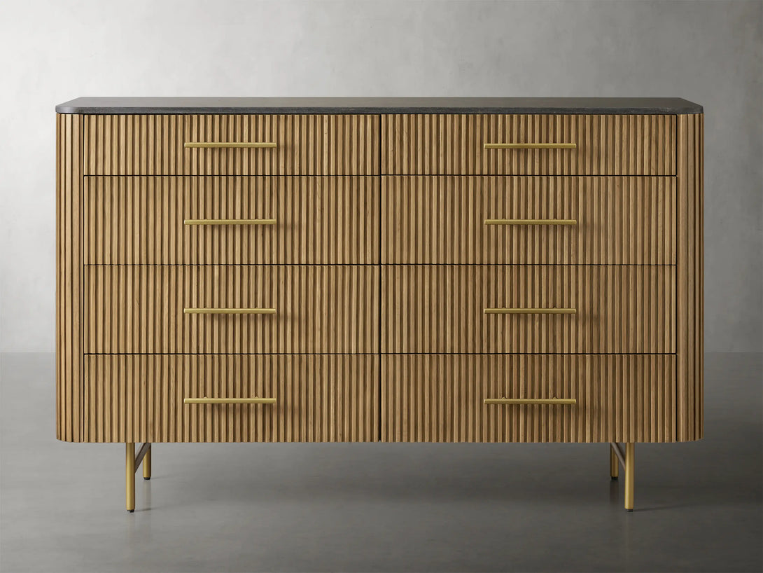 Our Fimley Bedroom Collection showcases a stunning mixed-material design, inviting elevated style into your bedroom oasis. Hand-finished pine from Finland or white oak wood is luxuriously accented by reeded oak detailing complemented by stone tops. The result is an eclectic-yet-chic bedroom suite that easily fits into the aesthetic of your home.