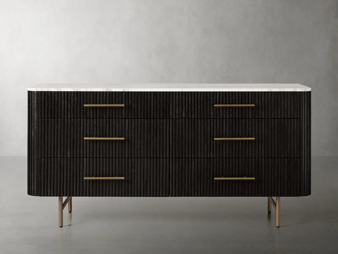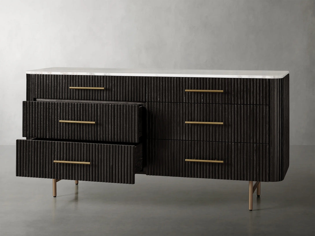Our Fimley Bedroom Collection showcases a stunning mixed-material design, inviting elevated style into your bedroom oasis. Hand-finished pine from Finland or white oak wood is luxuriously accented by reeded oak detailing complemented by stone tops. The result is an eclectic-yet-chic bedroom suite that easily fits into the aesthetic of your home.