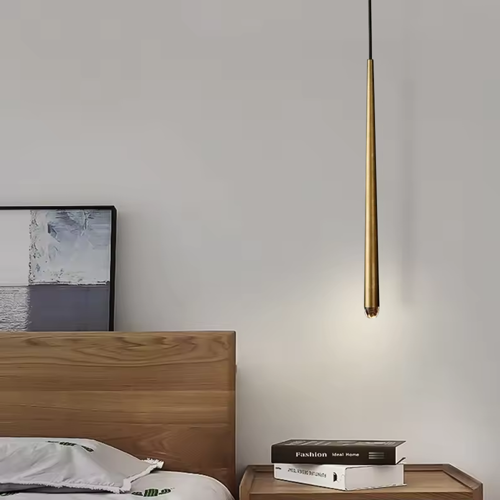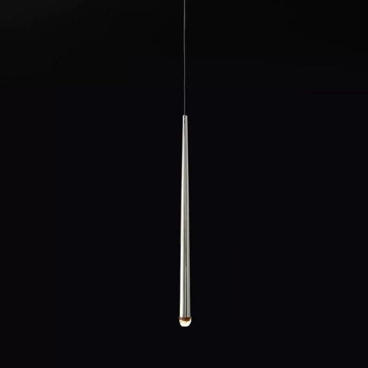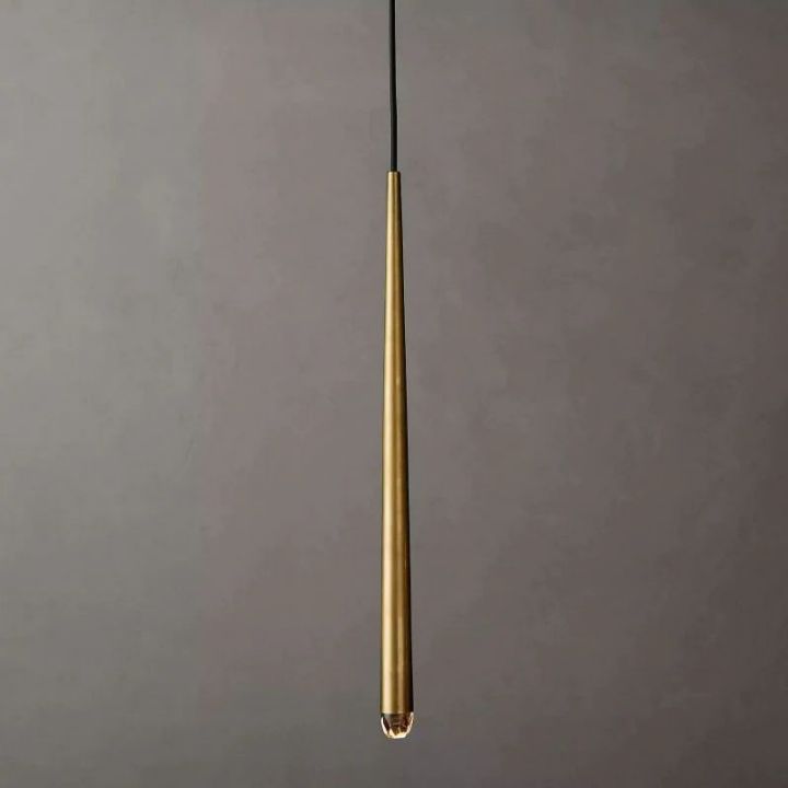 | The main feature of the collection is a cluster of solid brass in the form of a suspension on a thin black cord. Recessed LEDs at the top of the faceted glass provide a warm light. |