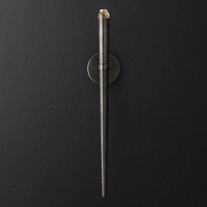 | The main feature of the collection is a cluster of solid brass in the form of a suspension on a thin black cord. Recessed LEDs at the top of the faceted glass provide a warm light. |