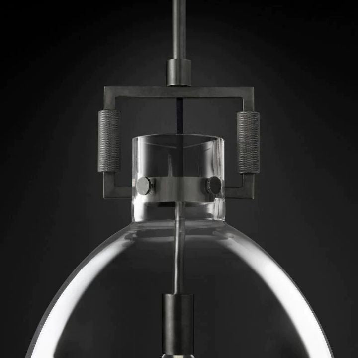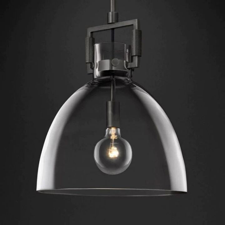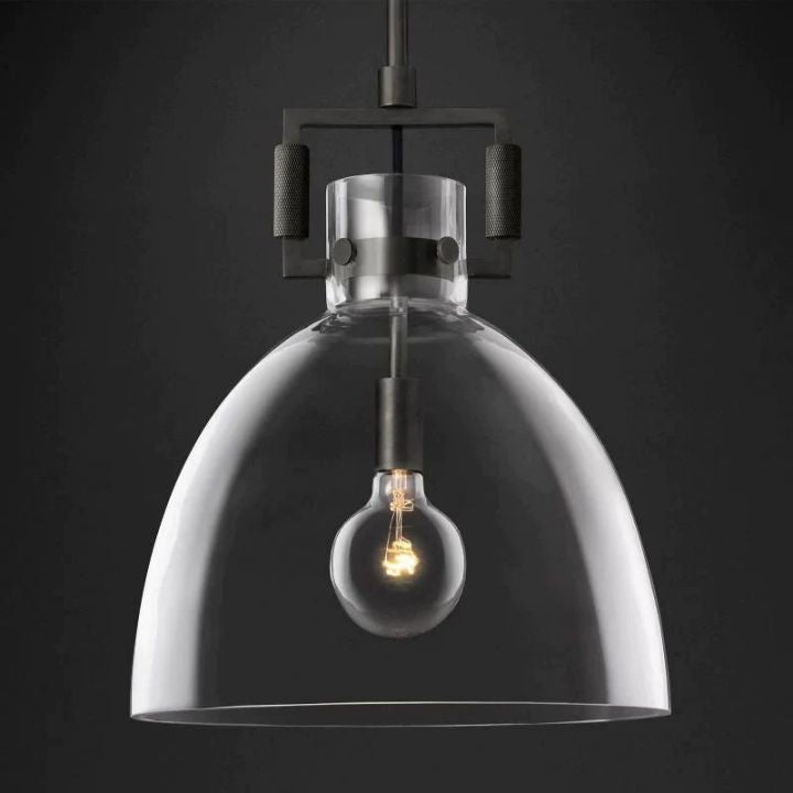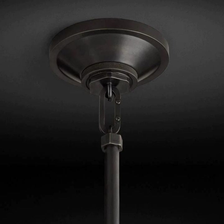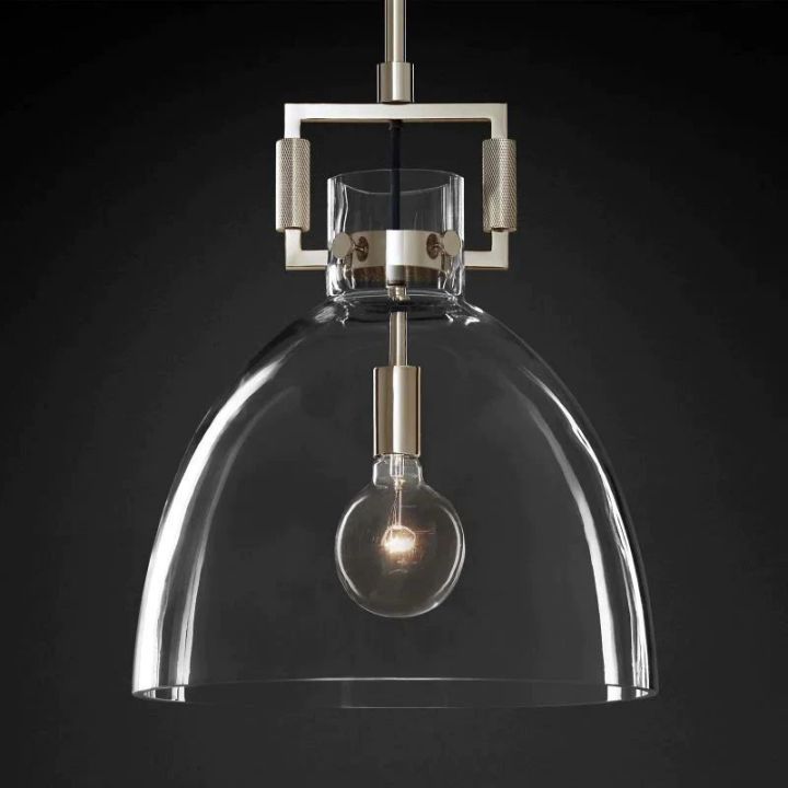 The collection is inspired by the functional fixtures used in workshops and factories throughout the mid-20th century. Bridging the gap between tradition and modernity, the classic dome shade is held in place by a sleek geometric metal yoke whose precise craftsmanship is defined by crisp angles, diamond knurling and exposed bolts.