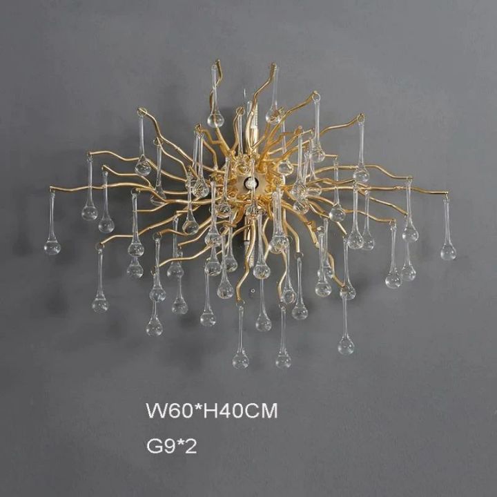 | It features intricately carved branches, crafted from aluminum that is electroplated with gold for an extravagant touch. These branches are fused to delicate crystal raindrops that reflect the sparkle of the bulbs and bathe your living space in an inviting glow. |