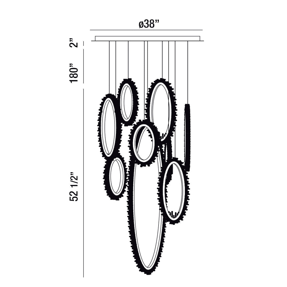 Elegant polished chrome rings are encrusted with strings of hand-crafted crystals. The stunning shape is reminiscent of an icicle halo for an unrivaled and sophisticated aesthetic.