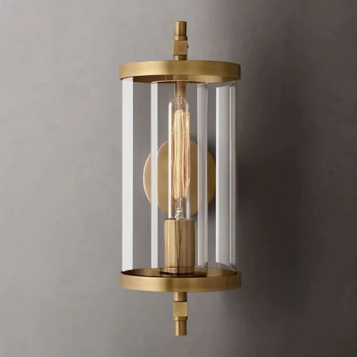 | This collection of wall lights embodies both simplicity and luxury, skillfully blending rounded and straight lines. The lights are elegantly suspended on crossbars, creating a floating effect against the walls. Within the glass cylinders, the illumination seems weightless, adding to the overall allure. The clear glass shades beautifully mimic the appearance of a pillar candle, allowing the bulb inside to shine brilliantly while remaining clearly visible. |