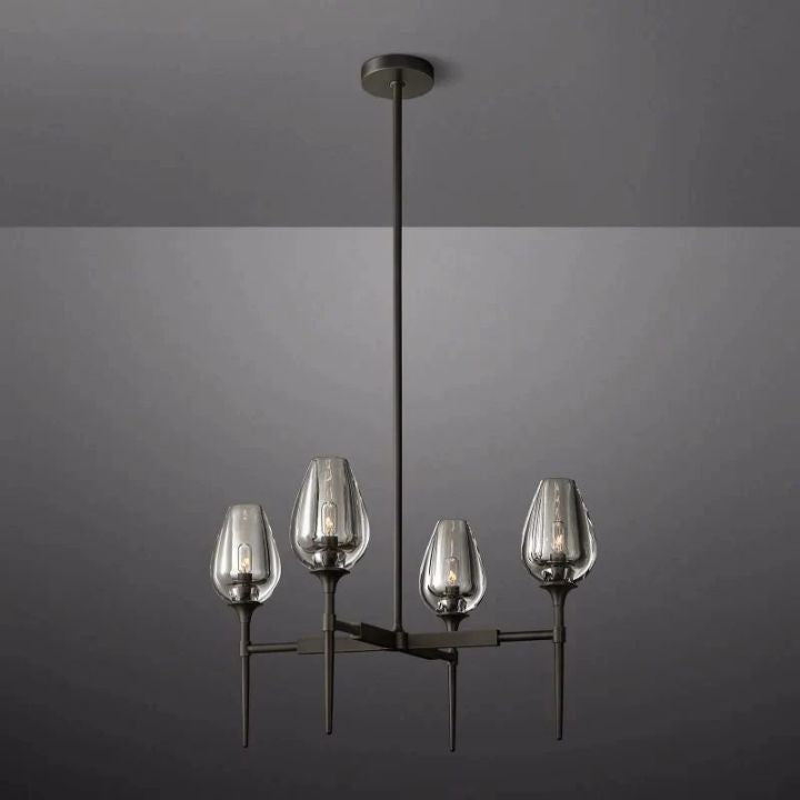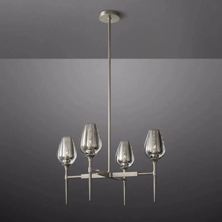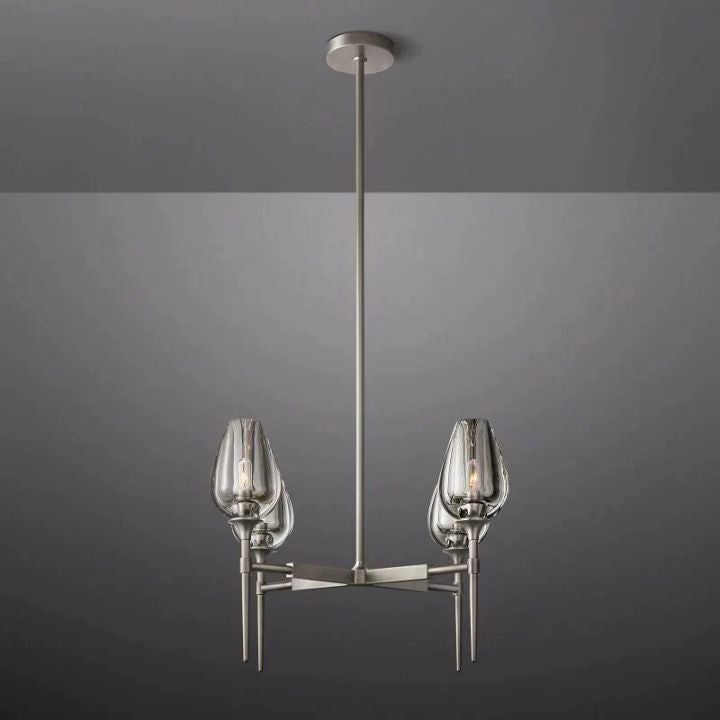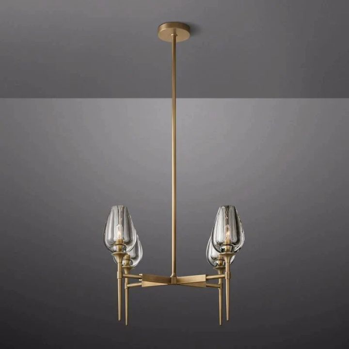 | The form of a tulip in bloom inspired this collection. Lathe-carved from solid blocks of crystal and then hand polished, the glass torchieres' graduated thickness captures a petal's delicate contours while casting a warm, atmospheric glow. An understated brass armature secures the fluid forms, evoking stems fixing the ephemeral flowers in space. |